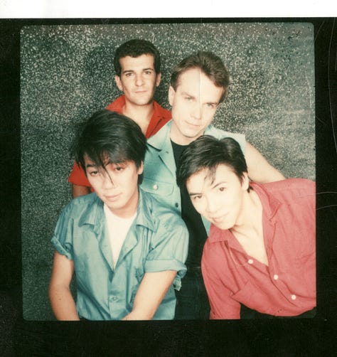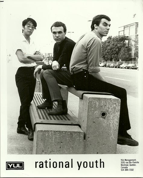 When Kevin played with us at our record launch last April, he still had fans approaching him trying to find out if he was the real Kevin Komoda in Rational Youth. There were many new wave bands in Montreal at the time but RY were the first ones in Canada to make it big with the song “In Your Eyes”. When Cold War Night Life was released I was too young and obsessed with Culture Club to pay attention to it. I was into whatever was happening on Casey Kasem’s top 40 countdown. “In Your Eyes” was released in 1983 as an EP when they got signed to Capitol. Kevin was still part of the band and you can see him in the music video for in your eyes if you scroll down, but he soon left after that. I remember hearing it on Chom (commercial radio station in Mtl) when the 2nd LP Heredity came out. And that’s when I fell in love with RY. They announced one day on Chom that they needed extras for a film shoot on a movie called Crazy Moon, staring Kiefer Sutherland in his first role! and RY were going to on stage performing in this scene (lip synching!) while the audience of extras goes crazy. Kevin was already gone by then. You can watch the scene on youtube, the entire movie is there with the RY scene, and my first appearance in a movie is a bit brief. Not sure if it’s actually me.