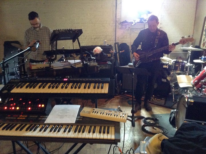 photos from left to right: 2 promo band photos, founding member Bill Vorn, live photo with Tracy Howe, Kevin Komoda and Bill Vorn, RY 80’s flyer, Kevin Komoda live in Stockholm when they reunited for a tour of Sweden (they’re still huge there!) in 2014, Brian Arsenault (synths) and Scott Cameron (bass), original RY member when they briefly reunited in 2012, Kevin and Bill Vorn posing below Bill’s Robotic art at Arsenal gallery in Montreal (2016). Bill is currently a Concordia Univerisity professor teaching in the Electronic Arts department. He’s been active in the filed of robotic art since 1992. He was in RY from 1981-1983.