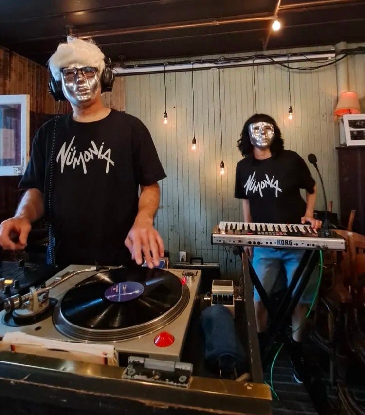 Kevin’s been in so many different bands, that sometimes he was having a hard time keeping track. One of Kevin’s bands after he left BNW was pest 5000. Jon was part of Pest 5000 and you can hear their full album In-ter/a-bang here. He was also in the band Action Men on Assignment and one of the songs will be featured on the 3rd volume of the Nome numa Quebec post punk new wave Compilation